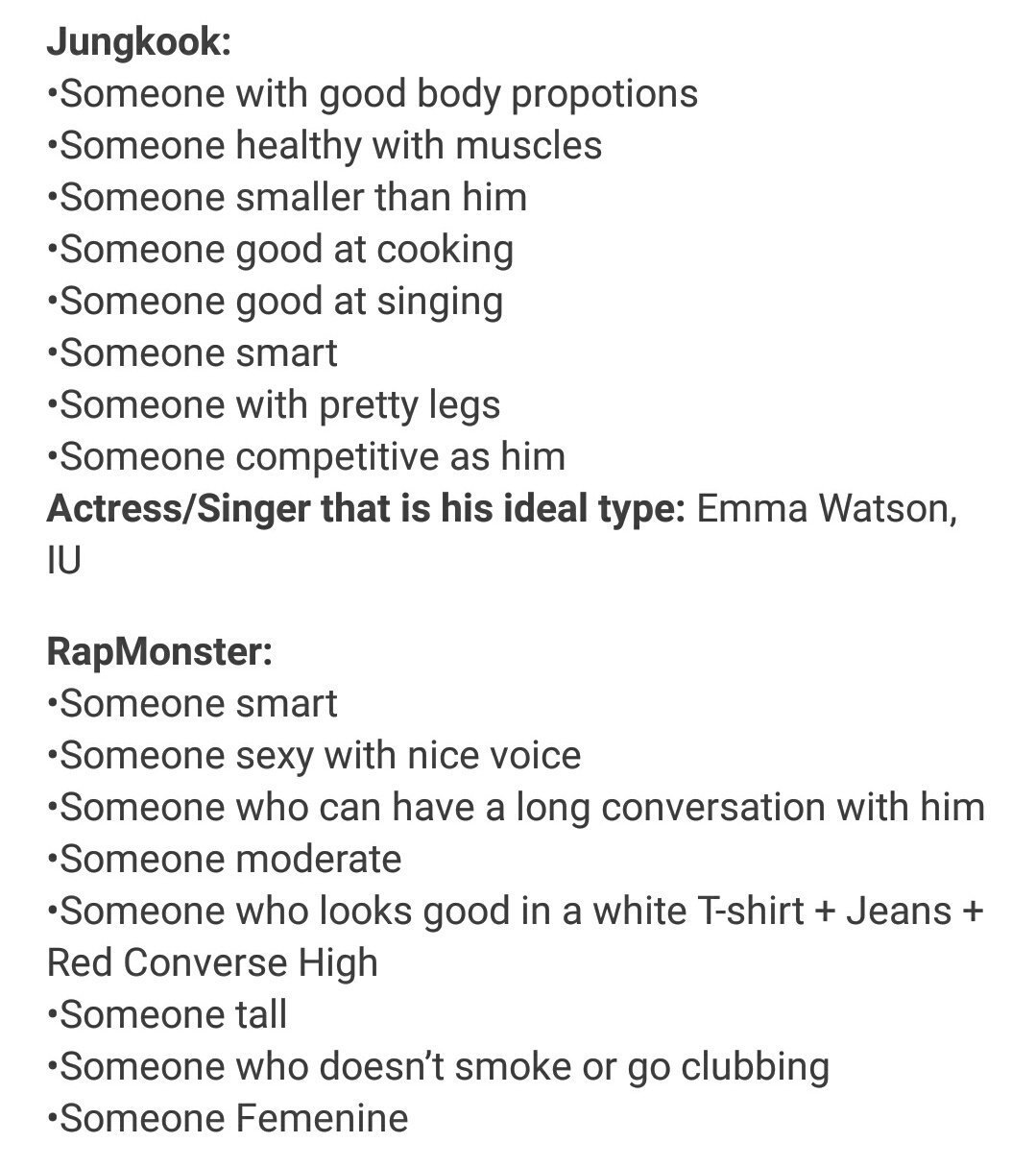 What Is Each Bts Members Ideal Type Quora